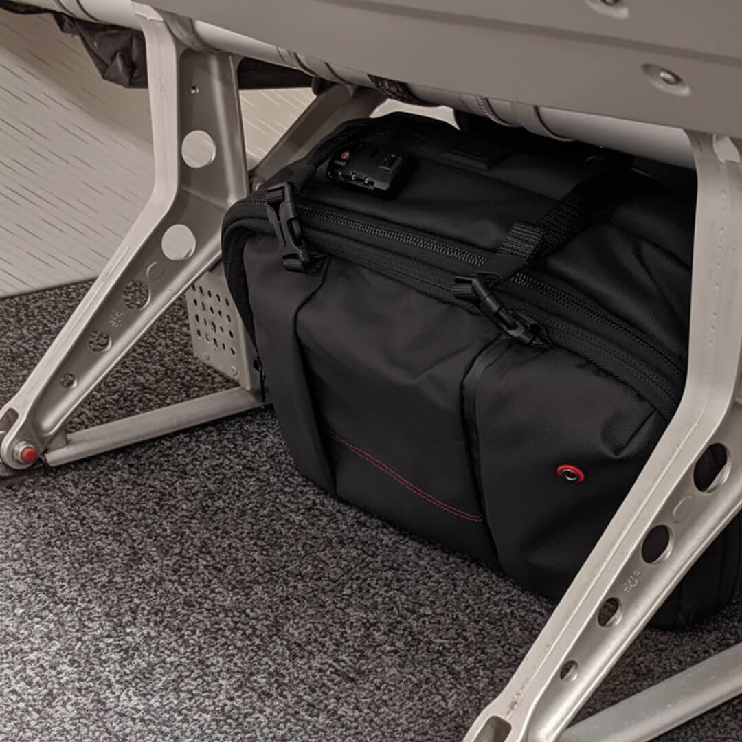 Keep all your essentials at your feet during the flight. The VAULTBAG® fits under the seat, giving you easy mid-flight access to snacks, books, or a laptop without awkwardly reaching into overhead bins or disturbing your seatmates.